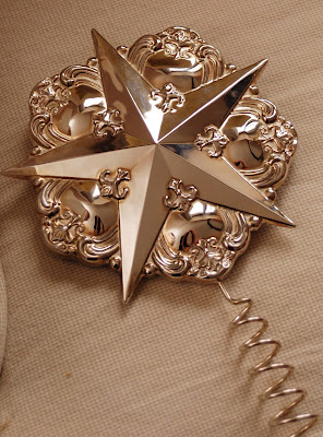 Here's our tree topper. It's a silver star that is the same pattern as our sterling silver flatware. Literally. Colonial something-or-other, I think. You know, you get bonus points for coordinating with your silverware during the holidays!